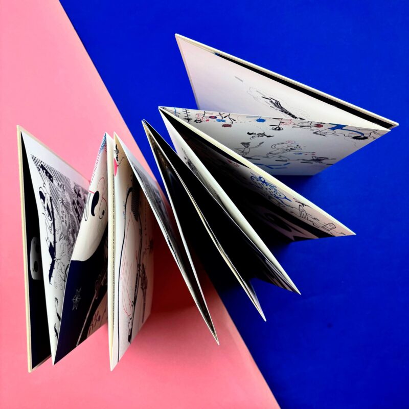 leporello in serigrafia, stampato a mano in 4 colori in 400 copie numerate