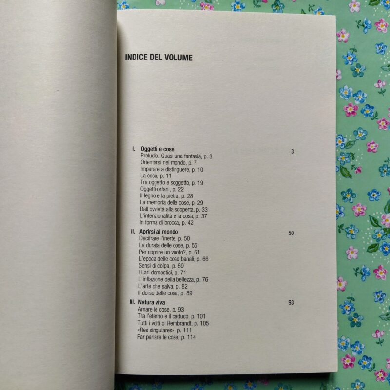 asfittica (...) paradossalmente, le cose parlano tanto più di noi, di ciò che ci costituisce, quanto più le lasciamo esprimere nel loro linguaggio. (...) Il nostro rapporto con loro somiglia, in tono minore, a quello dell'amore tra persone: per amare qualcuno, l'altro deve essere un altro me stesso, uguale a me per sentirmi in sintonia con lui, ma, contemporaneamente, anche diverso da me , affinché mi completi in ciò di cui sono carente. (...) Da ogni cosa, considerata con simpatica attenzione, possono allora diramarsi differenti percorsi di curiosità e di ricerca»