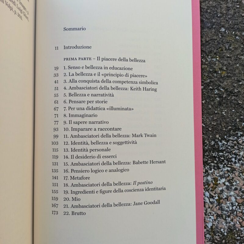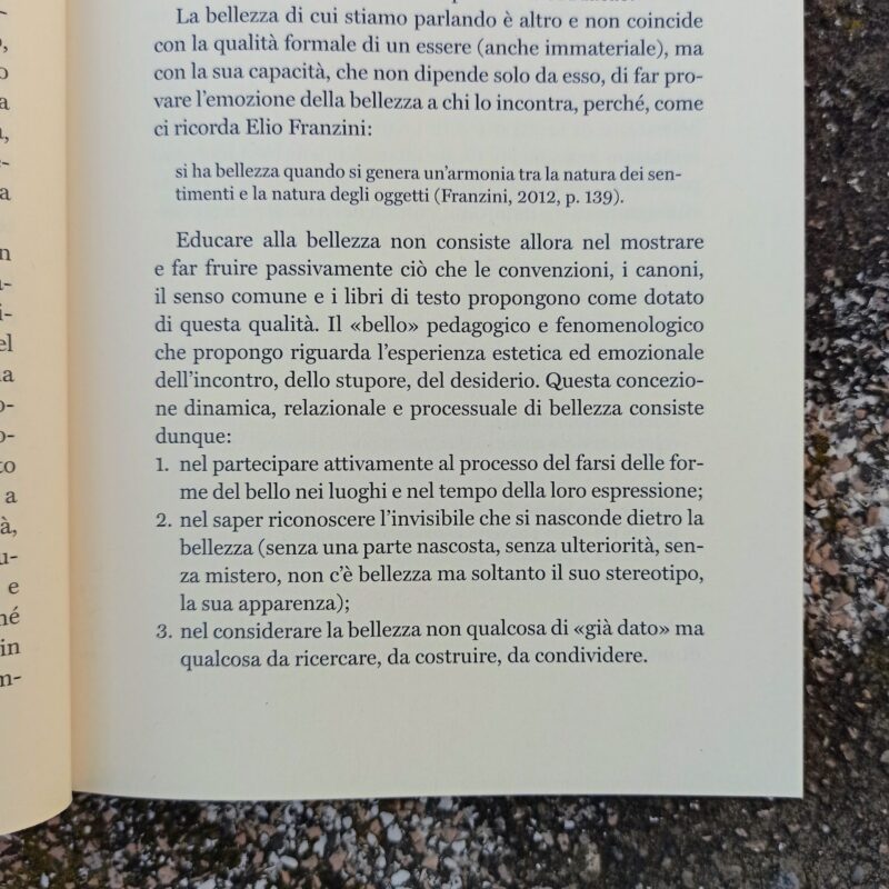 «L'esperienza della bellezza è quella che ci conduce (che può condurci) alle porte dell'anima, oltre la dimensione cognitiva, oltre un'accezione puramente strumentale di competenza, verso l'obiettivo mai definitivo, oggettivabile e valutabile della comprensione. Di noi stessi, del mondo, de nostro rapporto con esso.»