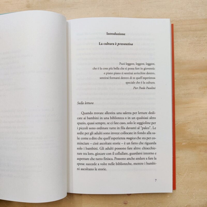 Se la lettura dalla nascita non è ancora un bene comune culturale così diffuso, allora è necessario riparlarne con con un focus diverso, sull’adulto più che sul bambino: “la lettura può favorire un buon attaccamento per il bambino e contemporaneamente aiutare a migliorare le capacità relazionali del genitore, e in generale arricchire il suo bagaglio culturale educativo”. E se il libro, edito da San Paolo, inizia e finisce con Pier Paolo Pasolini, allora va preso sul serio, in tutta la sua semplicità per un pubblico ampio di adulti.