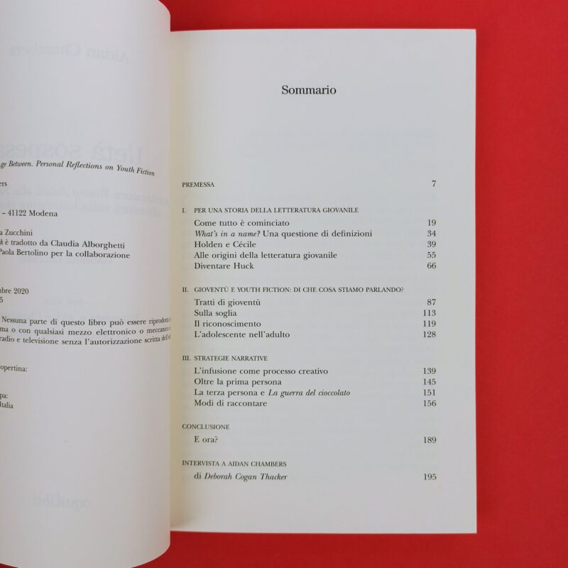 del nuovo secolo. Ha creato autori di culto tra le giovani generazioni ed è stata consacrata da numerose trasposizioni cinematografiche. Ma tanta considerazione impone una riflessione sulla natura stessa di questa letteratura. Cosa significa scrivere per quella fascia di giovani lettori che va oltre i quattordici anni e arriva alla soglia dell'età adulta? Ed esiste una letteratura specifica per i giovani lettori? Aidan Chambers, romanziere e saggista inglese, considerato uno dei fondatori della letteratura Young Adult, ripercorre la storia della letteratura giovanile, per individuarne le radici e delineare i criteri attraverso cui definire quello che lui considera un vero e proprio genere letterario: la Youth Fiction.