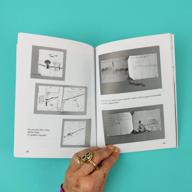 Il libro mostra poi un saggio grafico di bambini di 5-7 anni su come immaginano un libro come soggetto