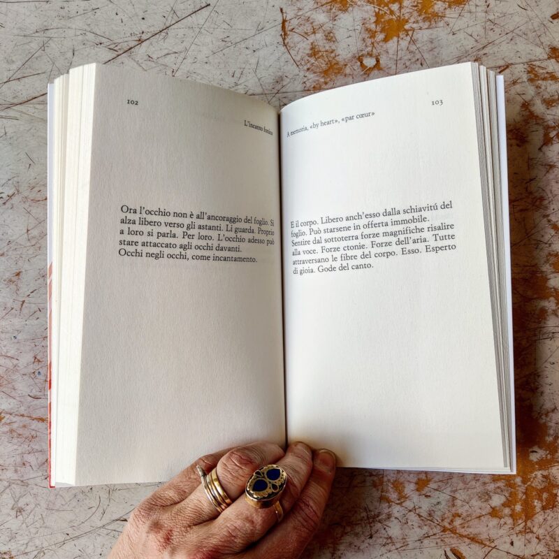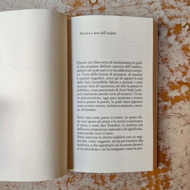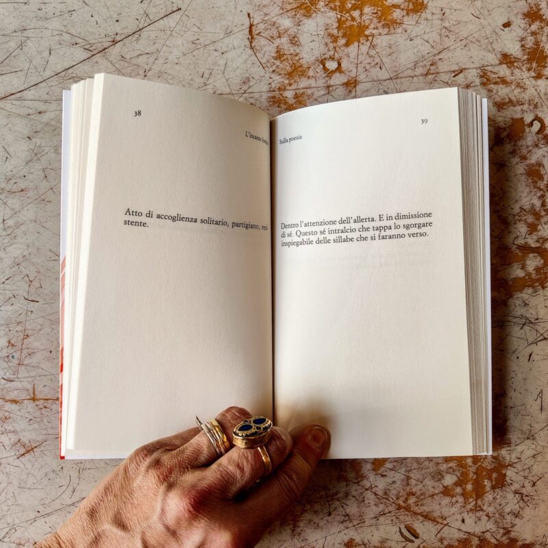 è psichica e interiore. C'è attesa. Non solo occorre dare parole scritte a questo sfacelo, occorre anche saperle pronunciare nella loro esatta melodia e ritmica, le nostre parole e quelle preziose del passato che come spariti schiacciati nei libri sono in attesa di trasformarsi in onde sonore. Ora che la lingua viene così mortificata, e le nostre vite sembrano più ingabbiate, la poesia è senza dubbio la rivolta più alta, la migliore alleata, e ha bisogno di tutte le sue potenze"