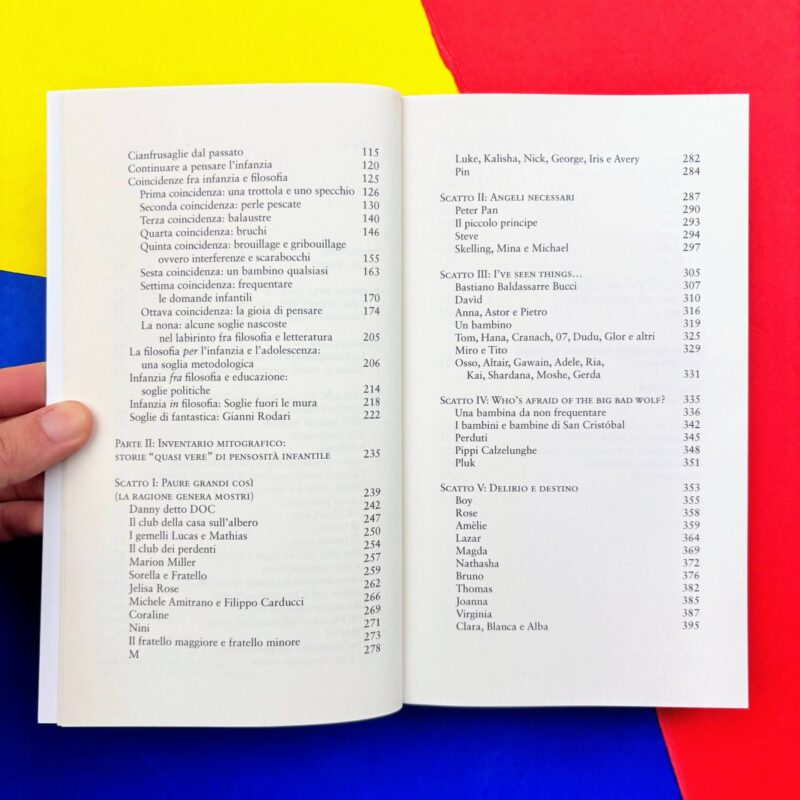 L’infanzia pensa. Per una filosofia dell’infanzia, esito di una ricerca dedicata alla pensosità infantile, esplora l’immaginario della letteratura filosofica e narrativa in cui compaiono bambini e bambine che pensano. Il volume si compone di due parti – l’ABC delle figure metodologiche di ricerca filosofica e l’Inventario mitografico delle pensosità infantili – che consentono di conoscere personaggi pensosi e fornire un solido contributo teoretico e metodologico al rapporto fra infanzia, filosofia e letteratura nelle molteplici direzioni ispirate anche alla philosophy for children. La prefazione di Pino Boero e la postfazione di Rossella Fabbrichesi aprono e chiudono il volume.