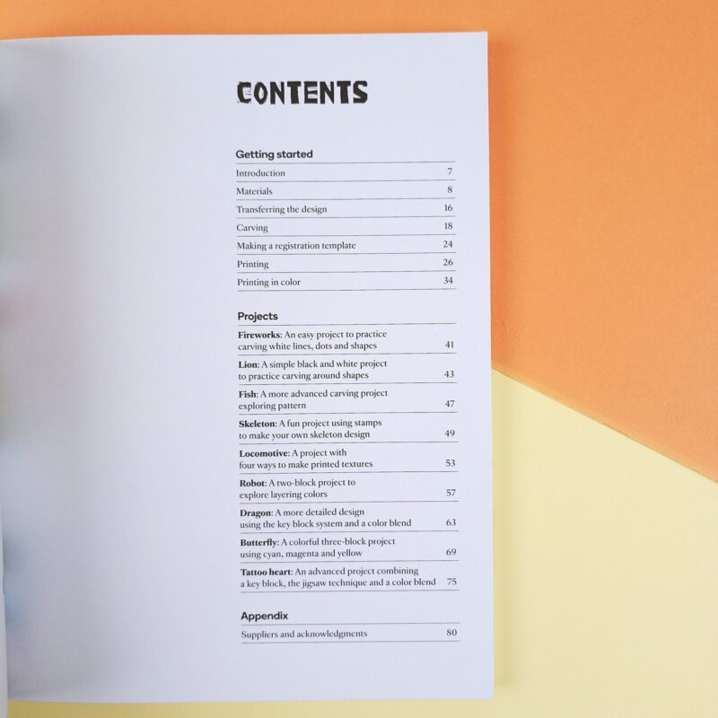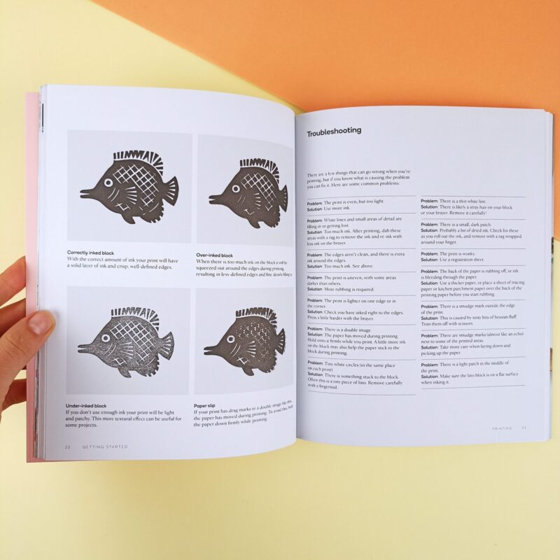 Prints to be proud of in no time at all Linocut is a perennially popular medium for the amateur artist, as the forgiving process makes it possible for a beginner to come up with powerfully graphic results using basic equipment. Nick Morley is a seasoned expert at guiding aspiring printmakers through their first projects, and this accessible book distills his knowledge into friendly step-by-step workthroughs, liberally illustrated with clear photography and examples of Morley’s own work. A section of templates at the end makes it easy to get started with block printing, so within a couple of days the reader will find themselves growing in confidence and skill.