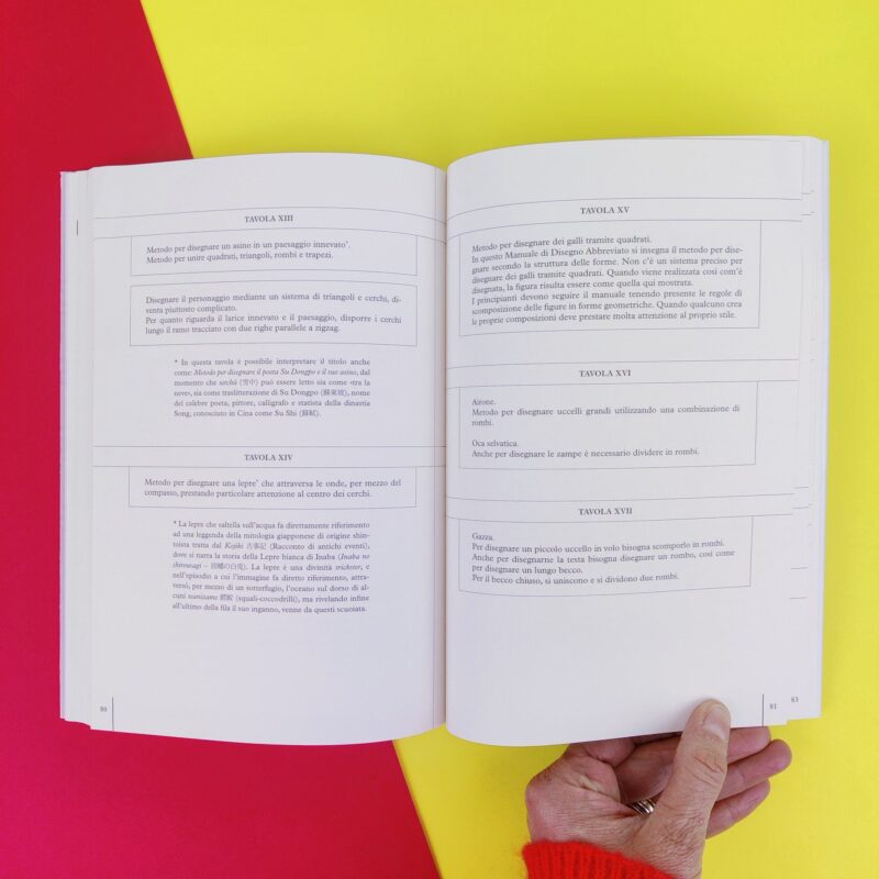 “Se osserverete con attenzione (..) tutta la gamma di forme geometriche composite sono a fondamento di ogni struttura di questo microcosmo. (..) É il mio sguardo sbilenco sul mondo. Come ci insegna il grande maestro Hokusai; ogni cosa, dal buco flessuoso all’ombrello di carta e bambù, disvela una struttura geometrica. A guardar bene ogni cosa sembra scomponibile e rimodellabile attraverso uno schema modulare di forme”. Avvicinando lo sguardo di Philip Giordano a quello di Hokusai, Wom edizioni ripropone il manuale di didattica del disegno semplificato di inizio ottocento per osservare la natura attraverso i suoi pattern e ricostruire un legame profondo a partire dalla sua struttura primaria.