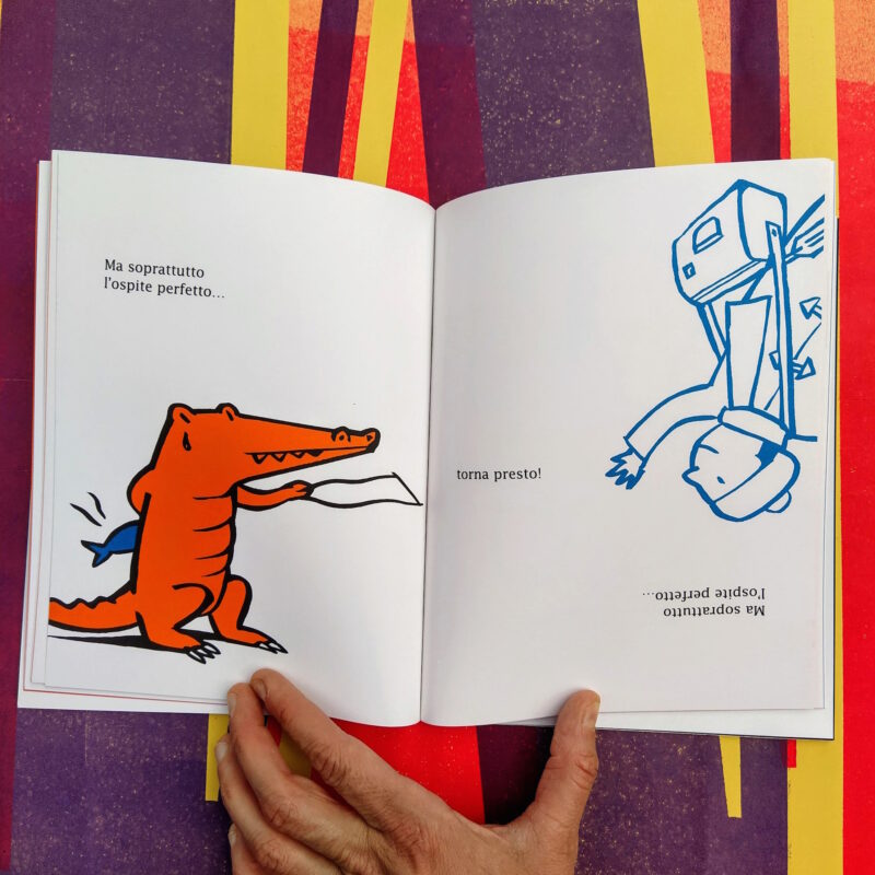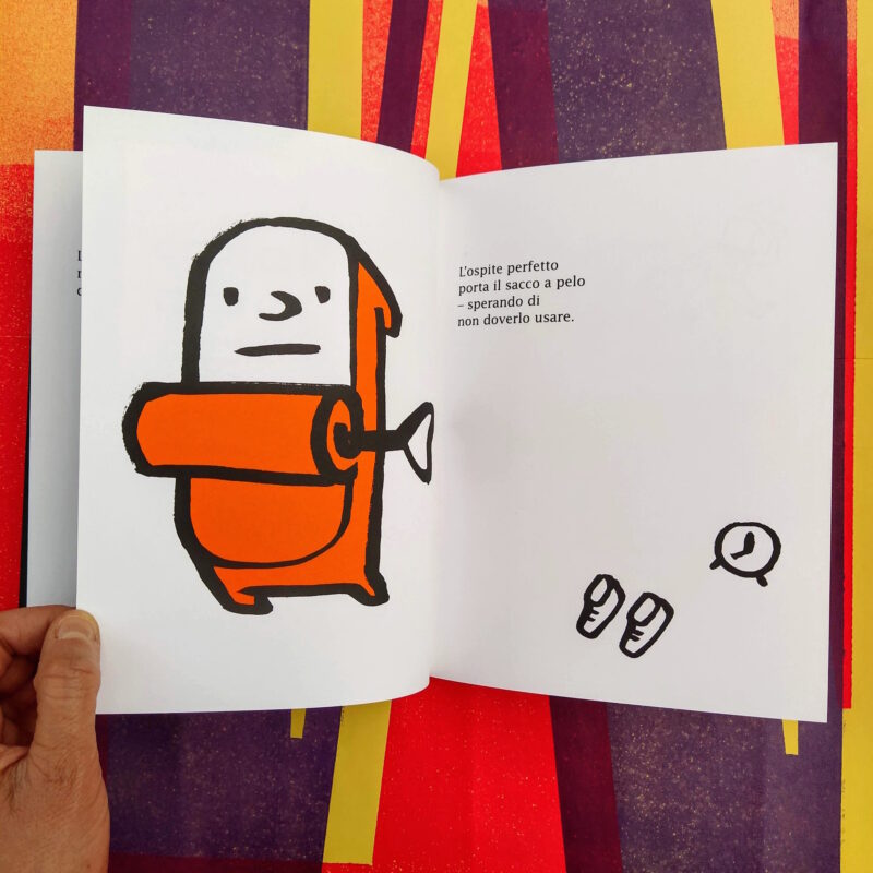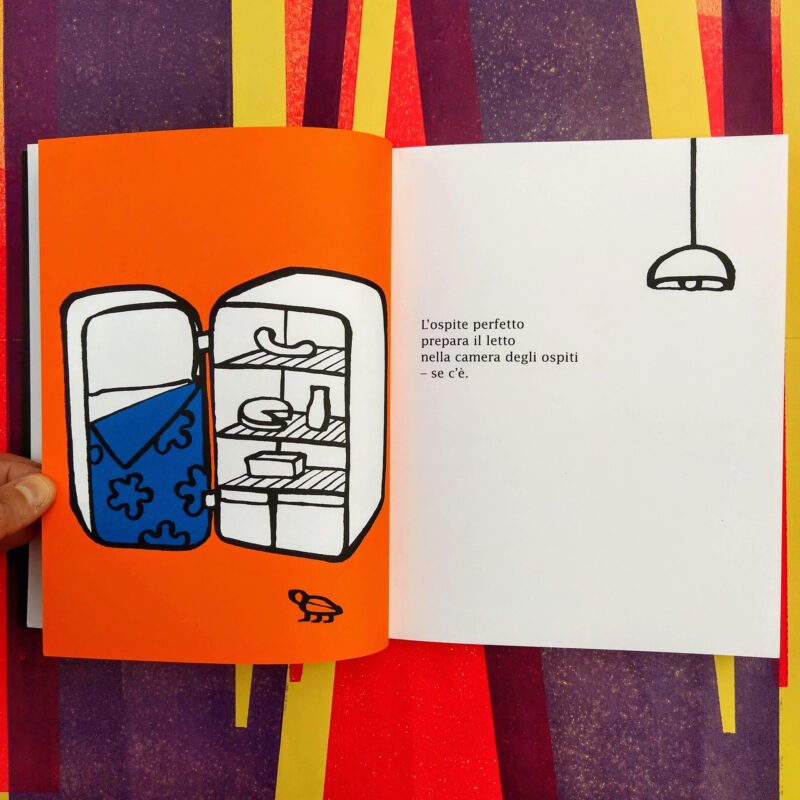 Un libro da leggere in due direzioni per giocare con l’idea di ospitalità: ospite è sia chi accoglie sia chi è invitato. Qual è l’ospite perfetto, in entrambi i sensi?