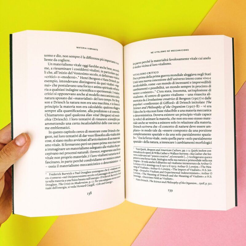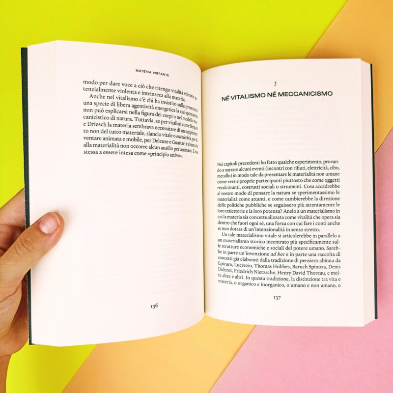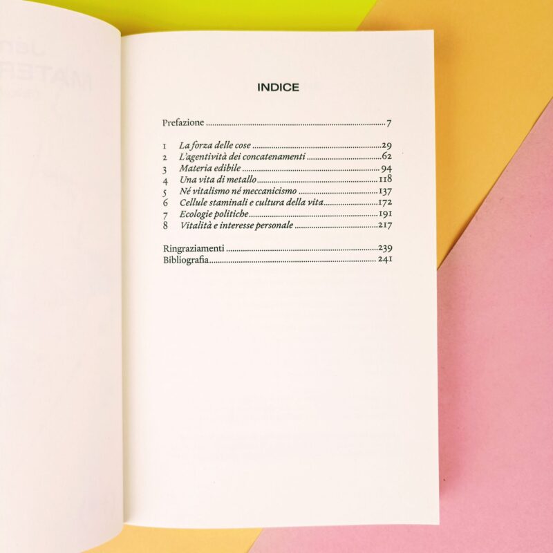 La proposta di un nuovo materialismo dove “tutti i corpi sono imparentati, inestricabilmente invischiati in una fitta rete di relazioni”: l’immagine di una materia morta e strumentalizzata aumenta la hybris e le fantasie umane di conquista e consumo che distruggono la terra. Serve riconoscere “la forza delle cose”, la loro loro vitalità intrinseca, siano corpi naturali o artefatti tecnologici, per immaginare una collettività umana-non umana che inneschi una nuova ecologia politica dove possiamo prenderci cura in modo migliore, più intelligente e di più ampio respiro della Terra e, quindi, di noi stessi.