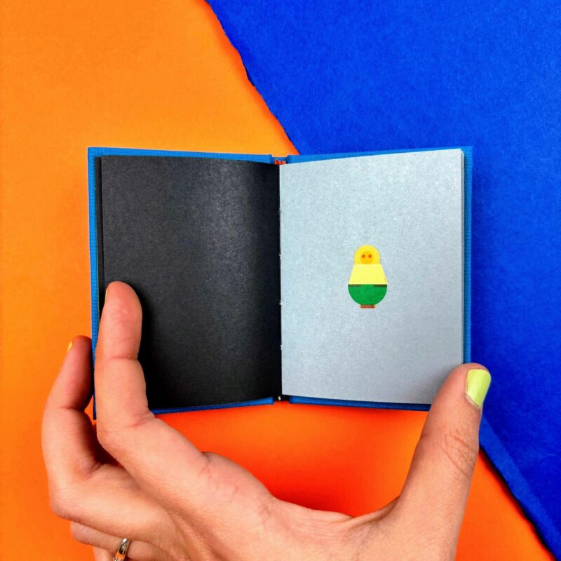 Una famiglia di moderne matrioske multicolor da 5 cm a pochi millimetri