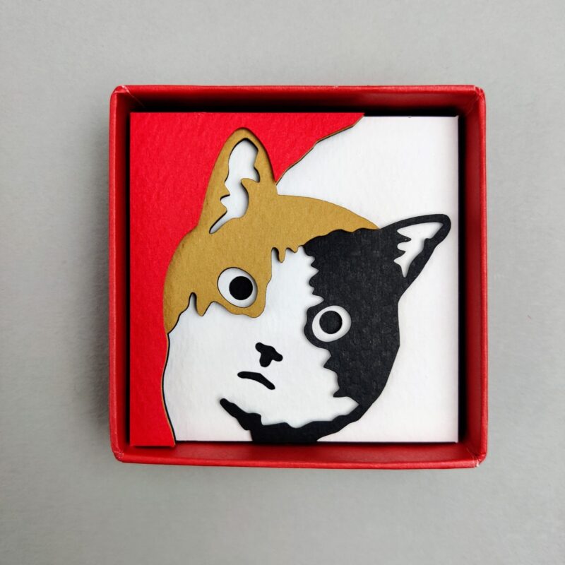 scatoletta contenente un ritratto in 5 strati di carta, fatto a mano