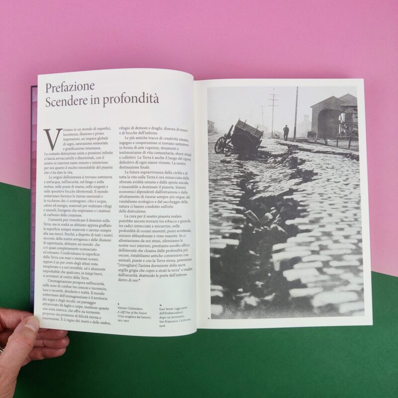 “Viviamo in un mondo di superfici, lucentezza, illusione e prime impressioni, un impero globale di segni, saturazione sensoriale e gratificazione istantanea. (..) Le origini dell’esistenza si trovano sottoterra e sott’acqua, nell’oscurità, nel fango e nella melma, nelle pozze di marea, nelle sorgenti e nelle iperattive bocche idrotermali. Il mondo sotterrano fornisce le risorse essenziali e le ricchezze che ci sostengono: cibo e acqua, calore ed energia, materiali per realizzare rifugi e utensili, l’ossigeno che respiriamo e i mattoni di carbonio della creazione. (..) L’immaginazione prospera nell’oscurità, nelle zone di confine tra conscio e inconscio, luce e oscurità, desiderio e realtà. (..) La cura per il nostro pianeta malato potrebbe ancora trovarsi tra erbacce e giunchi, tra radici intrecciate e micorrize, nelle profondità di oceani morenti, pozzi avvelenati, miniere abbandonate e vene esaurite.”