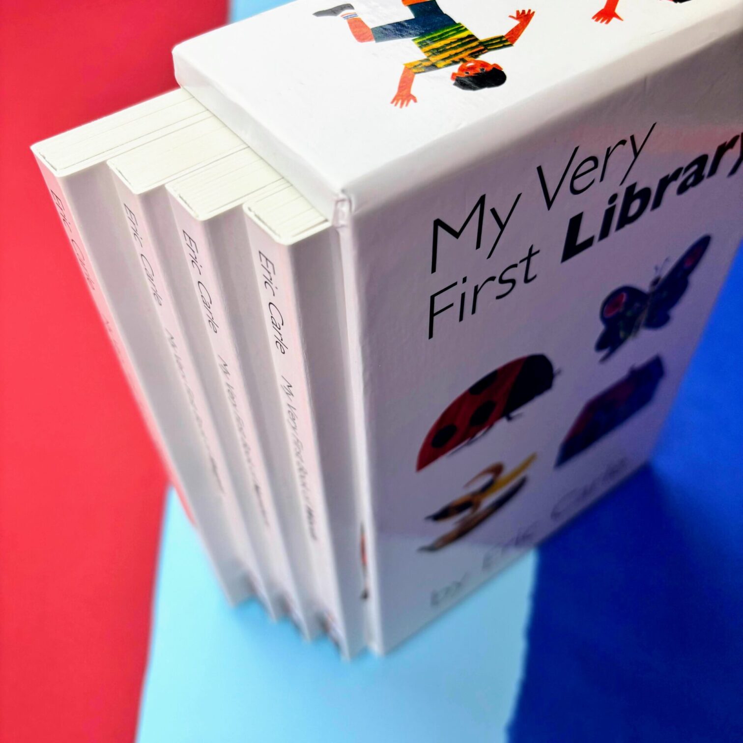 Here is the perfect gift for young children learning their colors, shapes, and numbers. All four of Eric Carle’s popular new split-page board books are now packaged together in a slipcased library. A game as well as a learning experience, these early concept books are both fun and smart. Children can turn the top pages independently from the bottom pages, creating a matching game that offers all the charm of Eric Carle’s bright collage illustrations. Collected here are My Very First Book of Colors, My Very First Book of Shapes, My Very First Book of Numbers, and My Very First Book of Words. Irresistible fun for young hands and minds!
