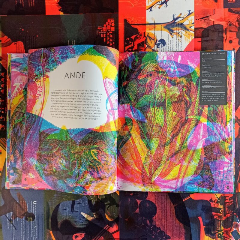 rilegato con allegate lenti con filtri colorati per esplorare gli habitat in tridimensione