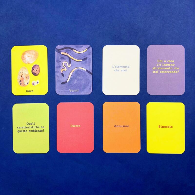 naturale che ci circonda, ma può essere interessante utilizzarlo anche per osservare da un'altra prospettiva la casa, la città, la scuola, la biblioteca, il parco giochi...tutti i luoghi della quotidianità. Entrare nella dinamica del gioco richiede un po' di pazienza e riflessione ma poi si apre un mondo! Anche le combinazioni insolite tra le categorie accendono domande e sguardi per aprire nuovi punti di osservazione, esperienze di scoperta e piste di lavoro da immaginare.