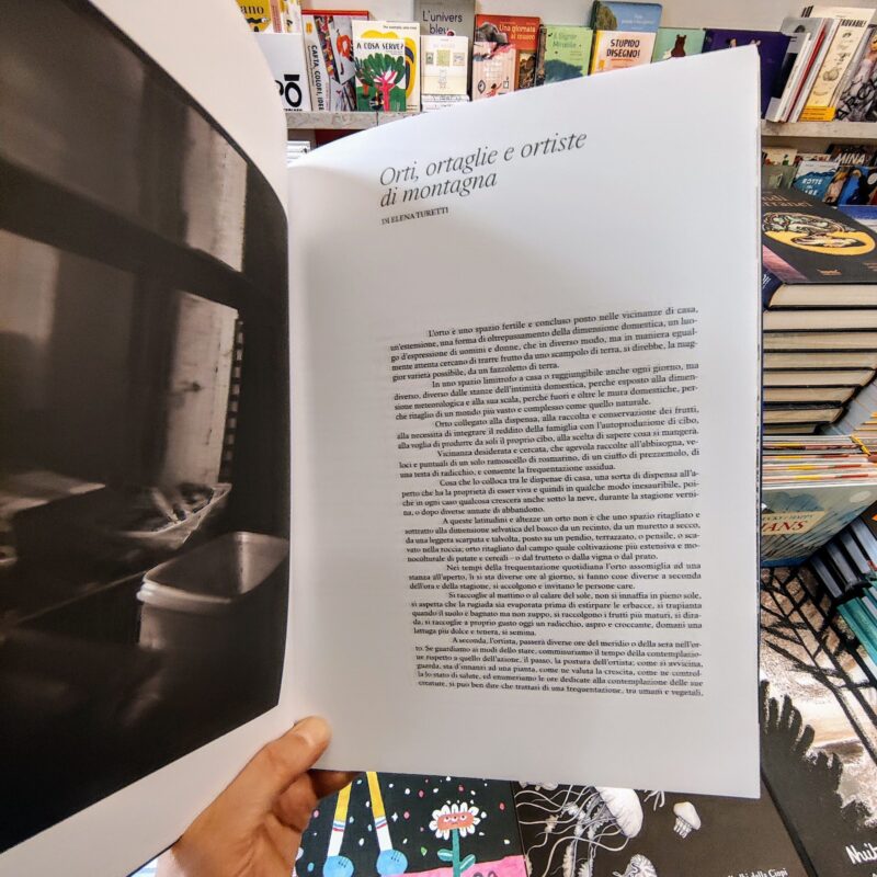 Proviamo a stare nell’orto con lo sguardo rivolto oltre e le mani occupate a trarre la maggior varietà possibile da uno scampolo di terra sottratto per un po’ alla dimensione selvatica del bosco e instabile del pendio. Semplice agli occhi del visitatore, l’orditura dell’orto è il frutto di una nutrita serie di scelte che fanno di questo luogo un grande condensatore, non solo di lavoro, ma di significati, e dell’ortista, un battitore libero. Chissà che l’orizzonte di un orto famigliare non sia un punto di vista interessante da cui guardare alle comunità di montagna, all’agricoltura e alla salvaguardia del pianeta? Per noi lo è stato. Da questa intuizione ha avuto origine questo libro.