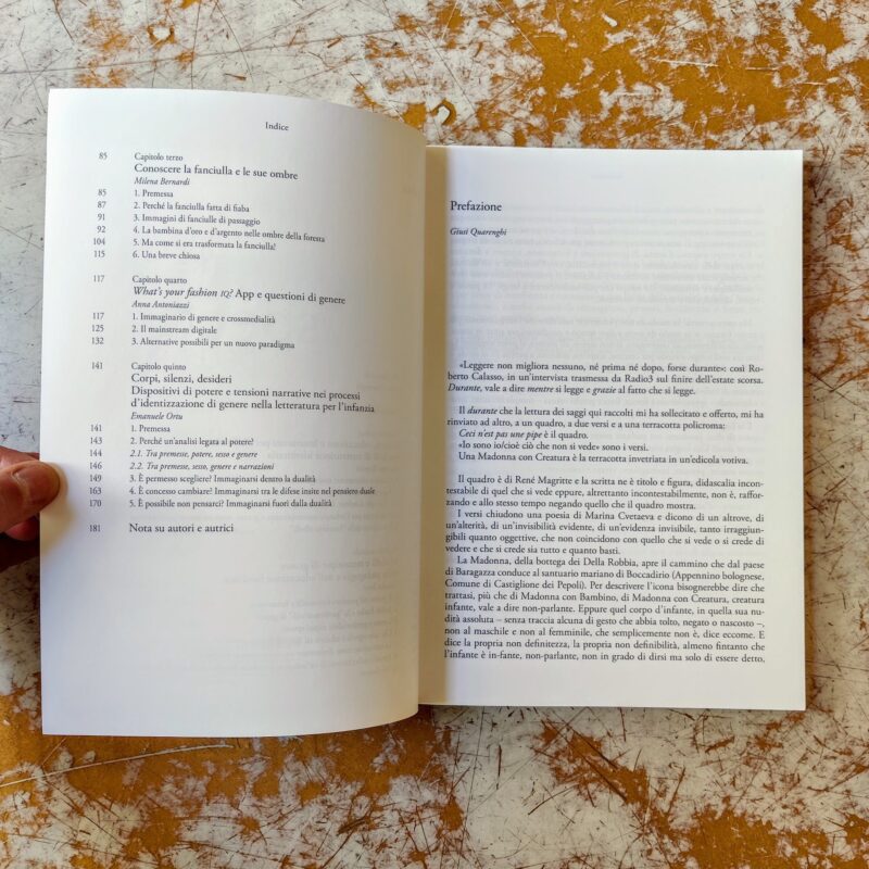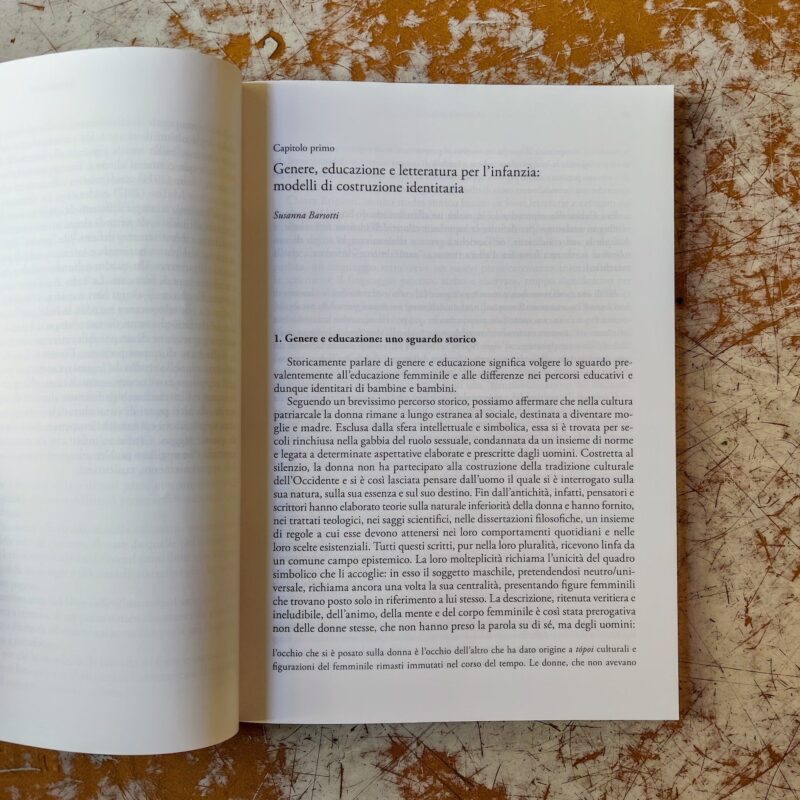 Le questioni di genere, da sempre presenti nel dibattito della letteratura per l’infanzia, hanno assunto negli ultimi anni, nell’editoria di riferimento, una presenza e degli spazi espliciti sempre più estesi. Libri senza stereotipi, bibliografie messe all’indice perché “gender”, accuse alle fiabe di essere portatrici di una cultura patriarcale, pubblicazioni e collane esplicitamente connotate esclusivamente per un determinato genere: sono solo alcuni esempi di fenomeni sociali e editoriali trasversali, con radici antiche e composite, che rendono esplicita un’attenzione viva e costante. «Le conclusioni sono la parte più effimera della ricerca», ci ricorda Marianella Sclavi. Ed è in quello spazio d’indagine che trova dimora questo volume. Una ricerca votata alla complessità, portata avanti con attenzione scientifica: scelte necessarie e opzioni praticate grazie a un’attenta analisi delle stereotipie di genere nella produzione delle narrazioni per l’infanzia e per i/le adolescenti negli ultimi dieci anni e, ancora, attraverso un lavoro sul campo che ha permesso di sperimentare anche con bambini/e adulti i libri analizzati, così da aprirsi a una costante messa in discussione. Il volume vuole contribuire al dibattito condividendo una metodologia di lavoro in ottica processuale; un punto da cui lettrici e lettori possano partire per i propri percorsi legati alla tematica.