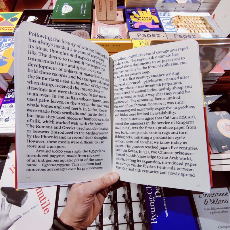 Un viaggio dalla fibra alla stampa. Dalle materie prime alla lamiera. Dall’archivio alla selezione. Trasformazione in stampa. Dalla scienza dei materiali alla risoluzione dei problemi. Un affascinante tuffo nell’artigianato, nella scienza e nell’abilità della fabbricazione, trasformazione, selezione e manipolazione della carta.