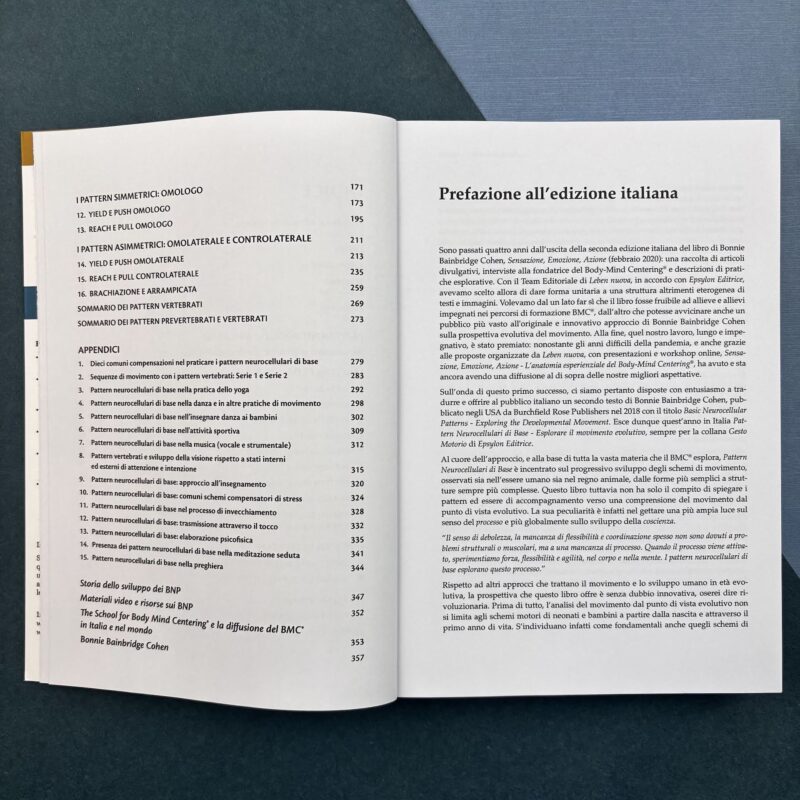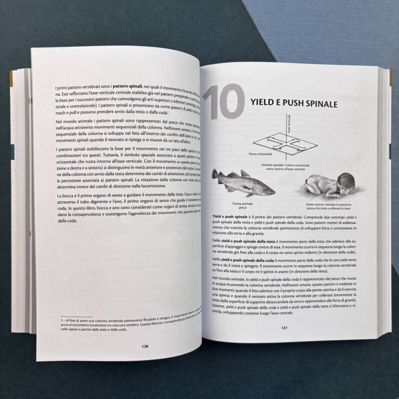Nella progressione di sviluppo, dal concepimento fino alla conquista della stazione eretta, i pattern neurocellulari di base (BNP), sono come parole e frasi che formano il linguaggio del movimento umano. In generale, influenzano il nostro funzionamento da tutti i punti di vista, fisico, percettivo, emotivo e cognitivo: dal modo in cui stabiliamo legami, ci difendiamo da qualcosa o ne siamo attratti, al riordinare le informazioni, apprendere e stabilire relazione con noi stessi, con gli altri e il mondo. Frutto di circa 60 anni di ricerca ed esperienze sul campo, questo libro presenta ciascun pattern con grande profondità e chiarezza, anche grazie ai paralleli con i pattern osservati nelle specie animali e alle numerosissime illustrazioni create ad hoc. Il testo è corredato da sezioni che guidano passo-passo l’esplorazione dei pattern e illustrano sequenze di movimento da cui poter sviluppare una pratica personale da svolgere regolarmente. Le quindici appendici a chiusura dell’opera, infine, illustrano come i BNP possono trovare applicazione in una grande varietà di attività umane e campi disciplinari: yoga, danza, sport, musica, visione, tatto, insegnamento, invecchiamento, elaborazione psicofisica, meditazione e preghiera.
