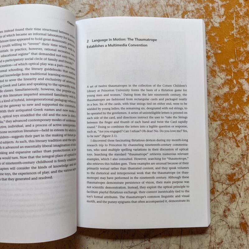 Drawing on extensive archival research, Bak discusses, among other things, the circulation of optical toys, and the wide visibility gained by their appearance as printed templates and textual descriptions in periodicals; expanding conceptions of literacy, which came to include visual acuity; and how optical play allowed children to exercise a sense of visual mastery. She examines optical toys alongside related visual technologies including chromolithography?which inspired both chromatic delight and chromophobia. Finally, considering the contemporary use of optical toys in advertising, education, and art, Bak analyzes the endurance of nineteenth-century visual paradigms.