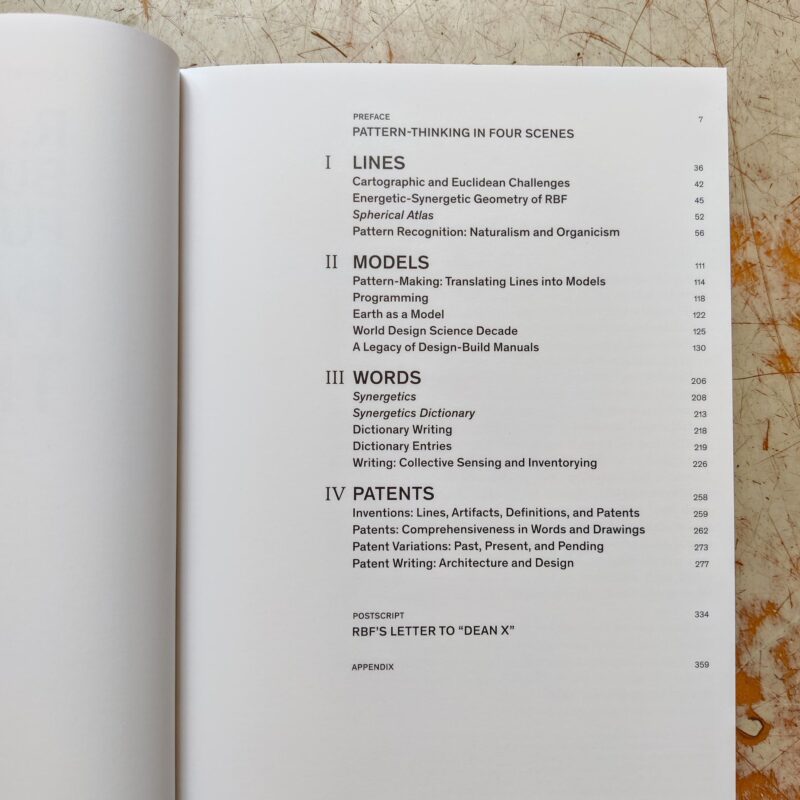 R. Buckminster Fuller: Pattern-Thinking is a major reassessment of Fuller’s legacy in the context of design, examining his singular vision of new conceptual models for design and architecture, alongside his ideas on their potentially world-altering consequences. Drawing extensively on his archive and with over 300 images, the book follows Fuller’s explorations of geometry, language and intellectual property in their relation to design principles and pedagogy, organizing its survey of Fuller’s work through parallel conceptual threads rather than in a linear chronology of his career.