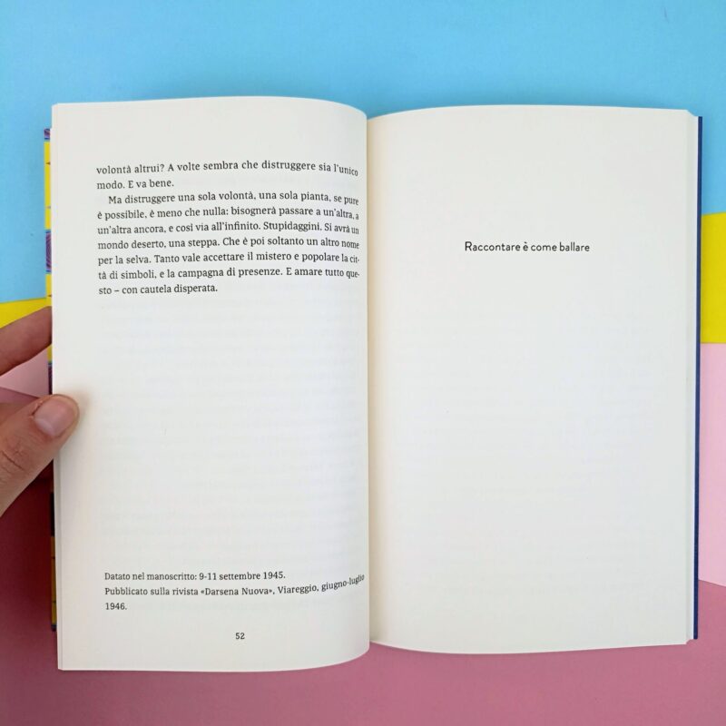 “Che cosa sarebbe la fine del giorno e l’indomani e l’avvenire se sparissero i simboli, se svanisse il mistero, se la notte non fossimo soli. Saremmo più morti dei morti. Ignoreremmo di volere qualcosa. Ingoreremmo che il prossimo – la città la donna – essendo soltanto mistero, attende da noi la percossa e la mano, attende di essere svegliato e tormentato, messo di fronte al suo dolore e al suo mistero. Se fosse possibile distruggere tutti i simboli, tutti in simboli, distruggeremmo soltanto noi stessi. Possiamo scoprirne di sempre più ricchi, più sottili, più veri, possiamo sostituirne, non negare la volontà che c’è sotto, la volontà avversa, la selva. In essa abbiamo il sangue, il respiro, la fame”.