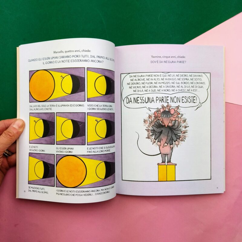 Il libro che avete tra le mani contiene una selezione di domande e risposte pubblicate sulla rivista francese “Philosophie Magazine” dal 2016 al 2023. L’idea è nata dal direttore editoriale del mensile, Alexandre Lacroix, che, ammirando molto l’opera di Claude Ponti, gli ha proposto di tenere una rubrica dove rispondere ai quesiti di bambini di età compresa fra i tre e i dieci anni. Dalle pagine di questa raccolta, evocative ed esilaranti, piene di immaginazione e meraviglia, traspare la generosità d’animo di un maestro della letteratura per l’infanzia che ha saputo edificare uno straordinario universo narrativo e illustrativo caro a generazioni di lettori. Prefazione di Maura Gancitano. Età di lettura: da 5 anni.