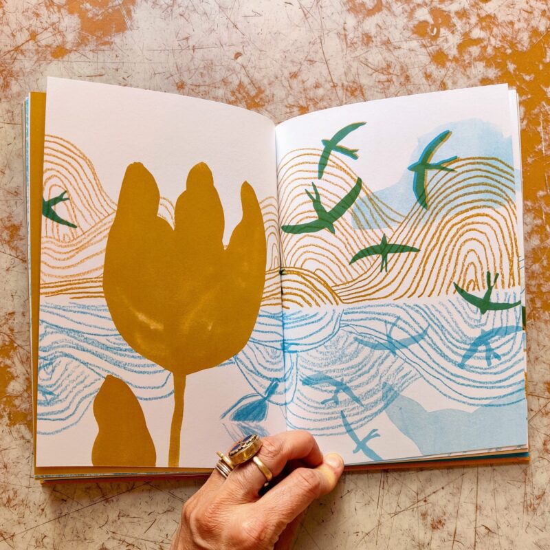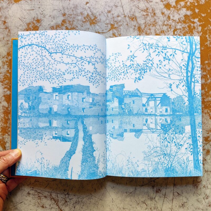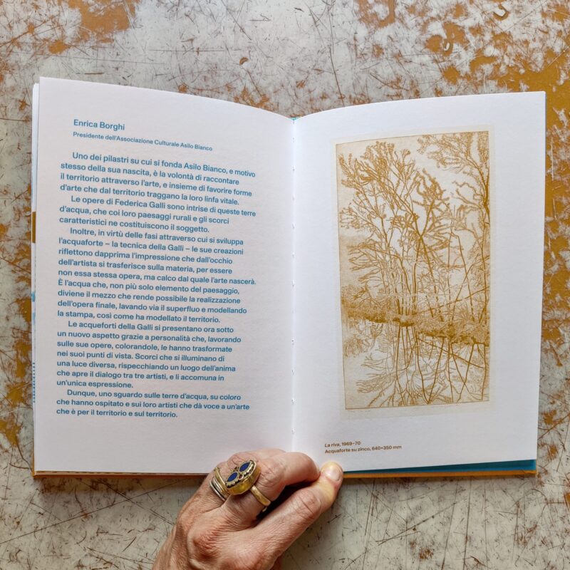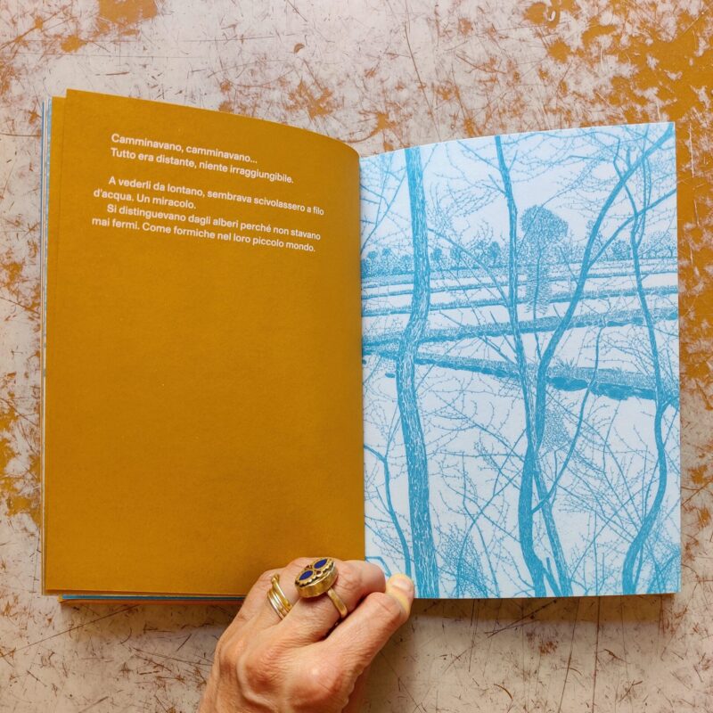 Alla sesta uscita del piccolissimo editore marinonibooks è sempre più chiara la forza di queste copertine telate dai colori sgargianti nel distinguersi tra le tante novità e combinare autori diversi. É il caso dei giochi d'illustrazione di Guido Scarabottolo con le acqueforti di Federica Galli intorno alle parole di Silvana D'Angelo sui paesaggi delle risaie del Novarese. "Specchi d'acqua", "il riflesso confuso di quello che siamo noi, adesso".
