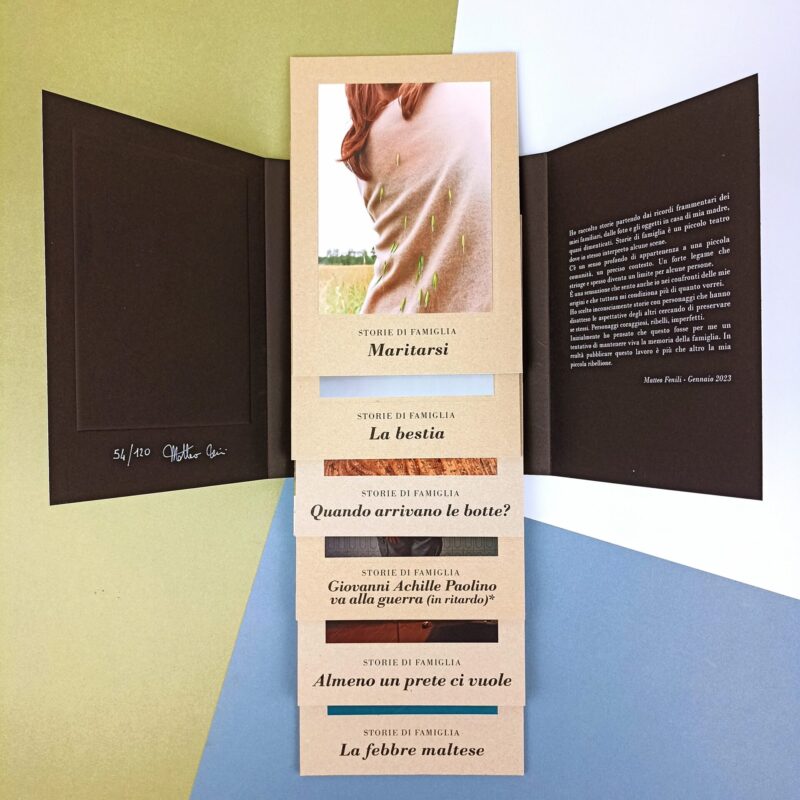Una raccolta di sei brevi storie leggere e spietate. Testi e fotografie mescolano memorie di famiglia e immaginazione per ricostruire alcune vicende personali del secolo passato. Favole lontane ma profondamente reali e vicine che raccontano di relazioni, identità, legami che a volte proteggono e a volte soffocano.