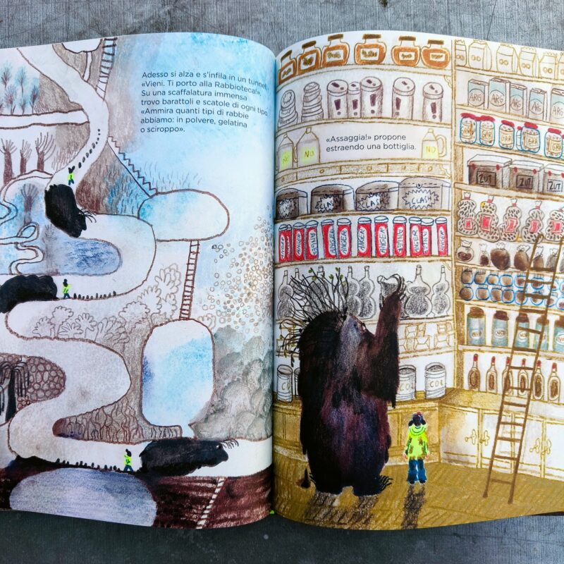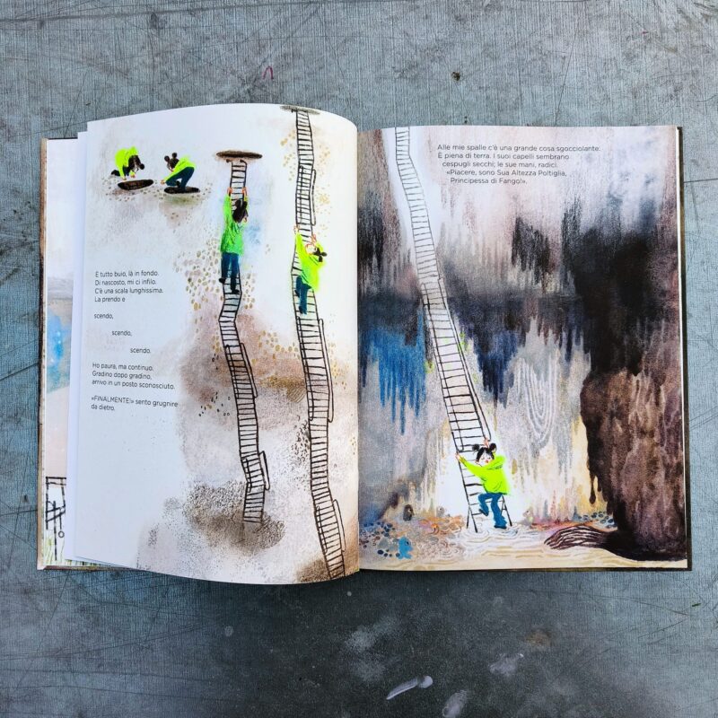 Yuki e Sen sono due fratelli. Quando Yuki, in un moto di rabbia, fa cadere le chiavi di casa nel tombino, subito è pervasa dal senso di colpa. Rabbia più senso di colpa e si va subito sottoterra. Decide così di andarci veramente e di recuperare le chiavi utilizzando una lunga scala. Qualcuno, che sa bene come va il mondo interiore di bambini e ragazzi, la stava aspettando: ecco Sua Altezza Poltiglia, Principessa di Fango. Ha inizio un viaggio catartico nel quale Yuki attraverserà la giungla nera, si tufferà nel lagondiglio, al Museo degli Odiosi troverà tutti gli oggetti che vengono buttati quando si è arrabbiati e nella rabbioteca scoprirà che la rabbia è edibile, si può bere e anche mangiare (e che quella degli altri è sempre più gustosa). Età di lettura: da 5 anni.