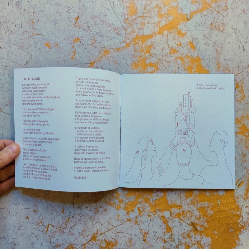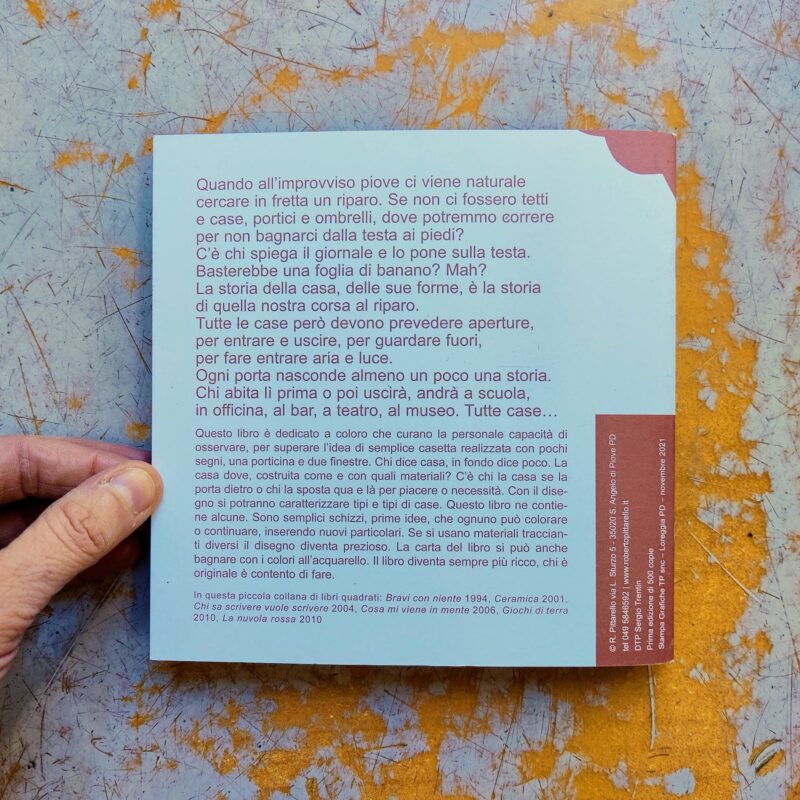 Questo libro è dedicato a coloro che curano la personale capacità di osservare, per superare l’idea di semplice casetta realizzata con pochi segni, una porticina e due finestre. Chi dice casa, in fondo dice poco. La casa dove, costruita come e con quali materiali? C’è chi la casa se la porta dietro o chi la sposta qua e là per piacere o necessità.