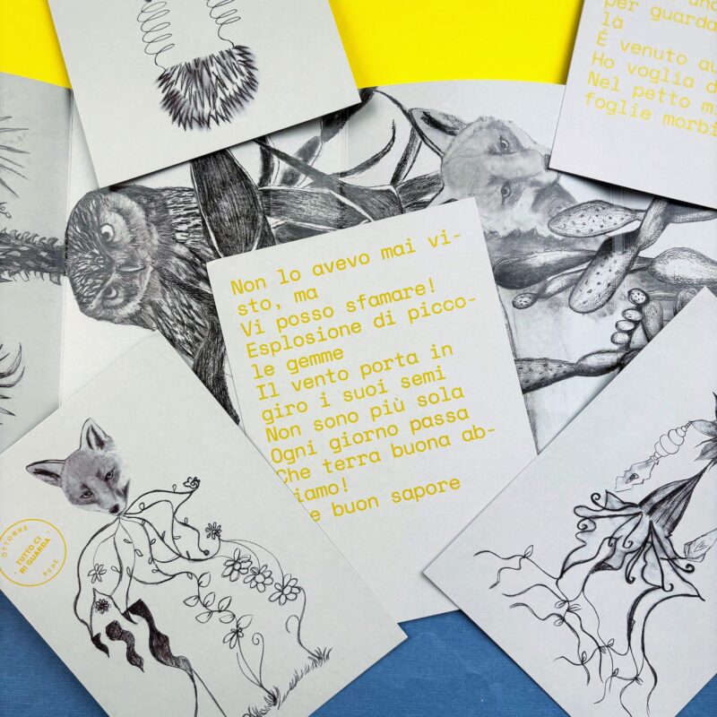 Kit di scritte e disegni-manifesto nati in modo partecipato, incrociando piante, animali e umanità.