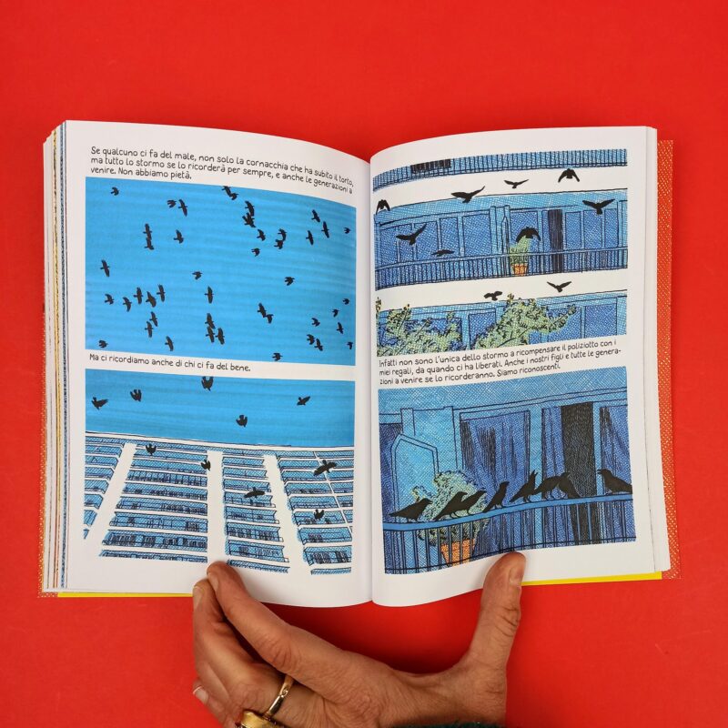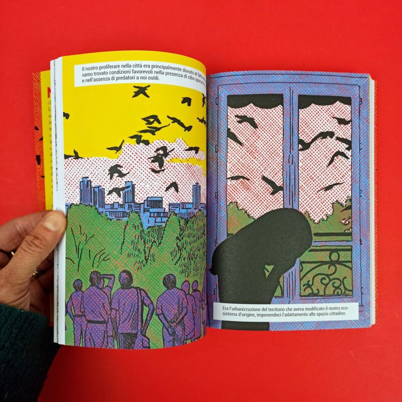 Nel parco parigino di Buttes-Chaumont c’è una grande voliera. Dentro c’è una cornacchia. È sola, ma non è un caso. La voliera è una trappola e la cornacchia è un’esca, messa lì per attirare i suoi simili che infestano i viali alberati della città. Un’altra cornacchia studia la trappola da lontano e osserva tutto quello che capita intorno a lei. Nel tempo, il suo sguardo ha imparato a riconoscere la guardia che si prende cura della trappola, i lineamenti di una bambina che al mattino passa da Buttes-Chaumont per andare a scuola e quelli di un gruppo di ragazzi che fa jogging nel parco. C’è una cosa che però la cornacchia non sa: la polizia sospetta che quei ragazzi siano coinvolti in attività terroristiche. Anni dopo aver fissato nella sua memoria queste persone, la cornacchia si ritrova a volare nel cielo di Parigi in un giorno sanguinoso: quello dell’attentato alla sede di «Charlie Hebdo», un avvenimento in cui i ragazzi, la guardia e la bambina giocheranno un ruolo determinante. Dal set degli “Uccelli” di Alfred Hitchcock all’attacco alle Torri Gemelle, Giacomo Nanni tesse una rete in cui i piani temporali si intrecciano, mentre il reale e il possibile si fondono fino a diventare indistinguibili. Nanni torna con un libro coraggioso, che mette a nudo le paure più profonde dell’Occidente: la violenza irrazionale del terrorismo e la strisciante sensazione che la nostra civiltà sia arrivata al capolinea.