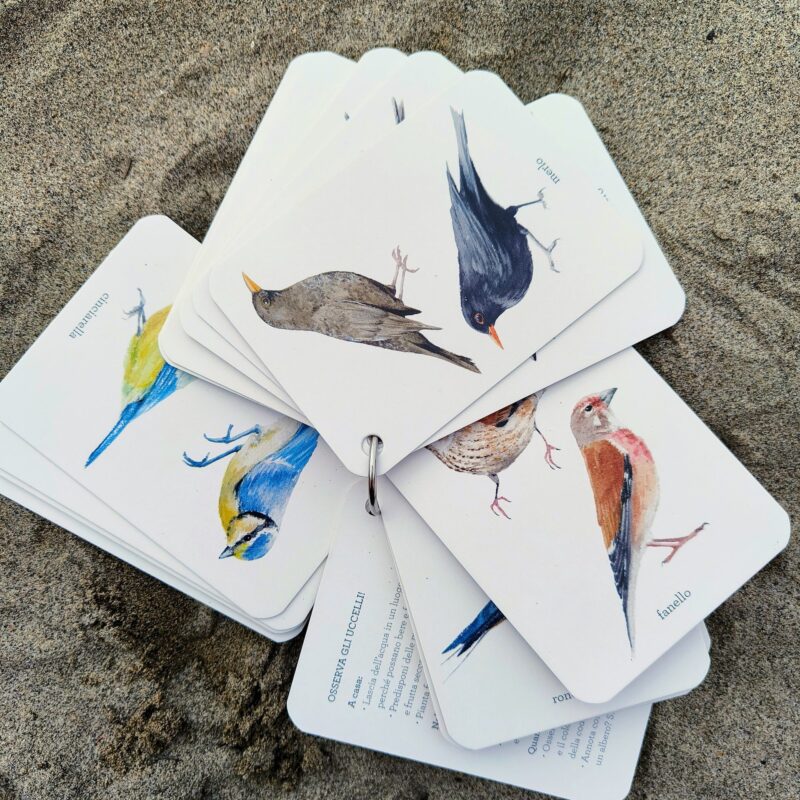 Carte per riconoscere gli uccelli con lo sguardo in sù.