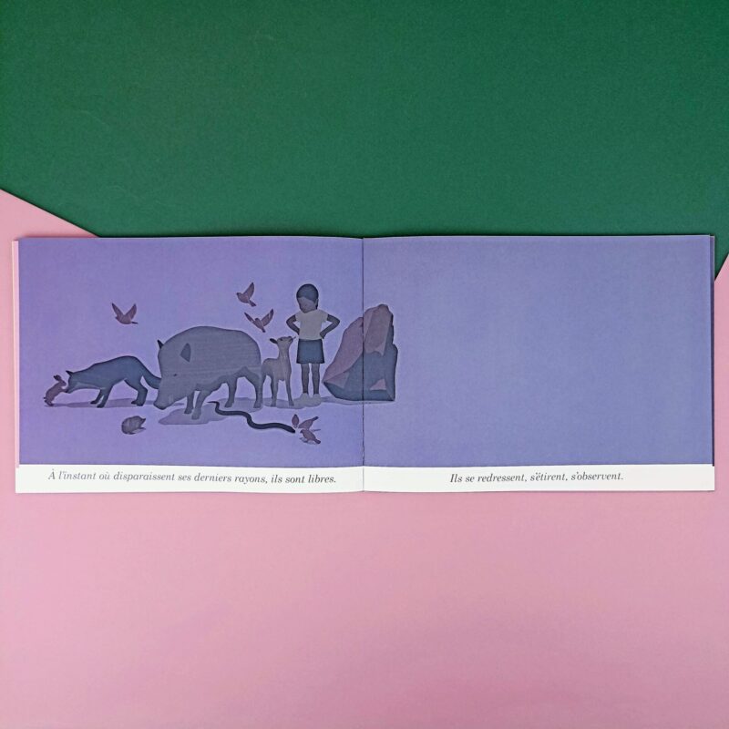 "Un abri" è un rifugio: una pietra per proteggersi dal sole. Lì trova riparo di primo mattino, avvolta da una luce incandescente che pian piano cambia colore, una bambina. Uno alla volta si aggiungono all'ombra che si allunga molti animali, uno vicino all'altro come nell'arca di Noè e una scultura di Enzo Mari. Quando cala la notte, sono tutti liberi e si guardano: "allora, nell'oscurità, si mettono in marcia. Una piccola truppa gioiosa e solidale". Un canto magnifico all'alleanza inter specie per creare un riparo comune.