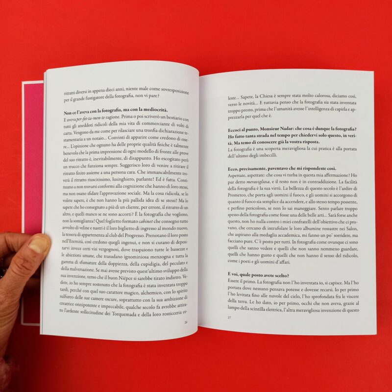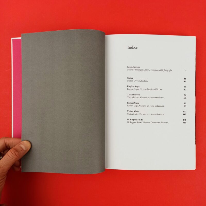 Incontri straordinari con persone straordinarie. Il giornalista e scrittore Michele Smargiassi ha realizzato delle impossibili, ma plausibili, interviste a sei grandi fotografi del passato: Robert Capa, Nadar, Tina Modotti, Vivian Maier, Eugène Atget e W. Eugene Smith. “A tutti ho posto, in forme diverse, la stessa domanda: perché fotografate? Perché è giusto, bello, necessario, utile fotografare? O magari non lo è? Da ciascuno ho avuto una risposta diversa. Perché la fotografia non esiste: esistono le fotografie, ognuna diversa dall’altra. E alla fin fine, penso che tutte le fotografie condividano una medesima, forte, semplice spinta antropologica, morale, umana: la voglia di vedere il mondo e di condividere quella visione”.