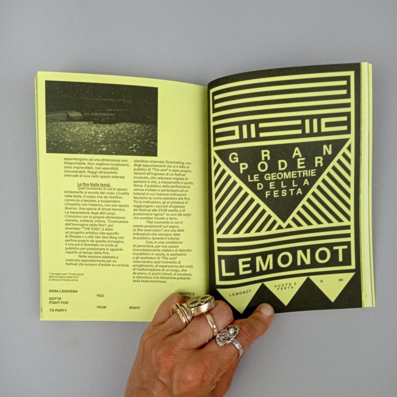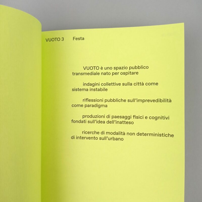 "Di sicuro, non è tempo di aspettare la gioia. É tempo di andarla a cercare, di venerarla e di offrirle i nostri migliori doni. A noi i tamburi, maschere e scenografie. A Lei, la Festa, il nuovo Vuoto".