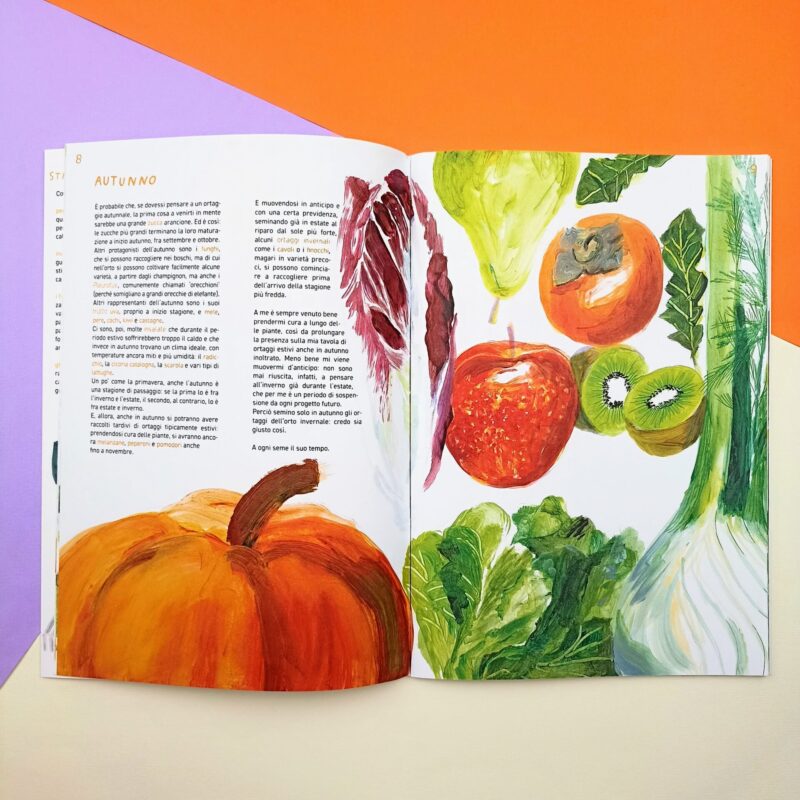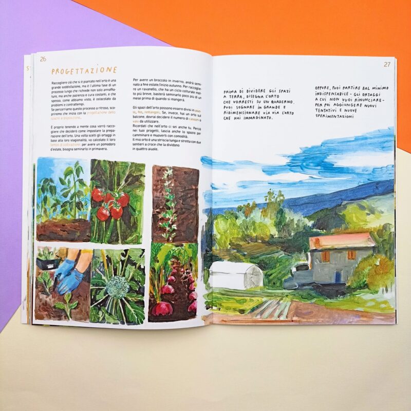 “Forse non imparerai tutto il necessario per coltivare un orto impeccabile, ma ti verrà voglia di allargare lo sguardo e prestare attenzione anche a tutto ciò che c’ è intorno a quel che coltiverai (..) e, infine, di andare in profondità e scoprire cosa avviene attorno alle radici e quanta vita c’è anche nel suolo”.