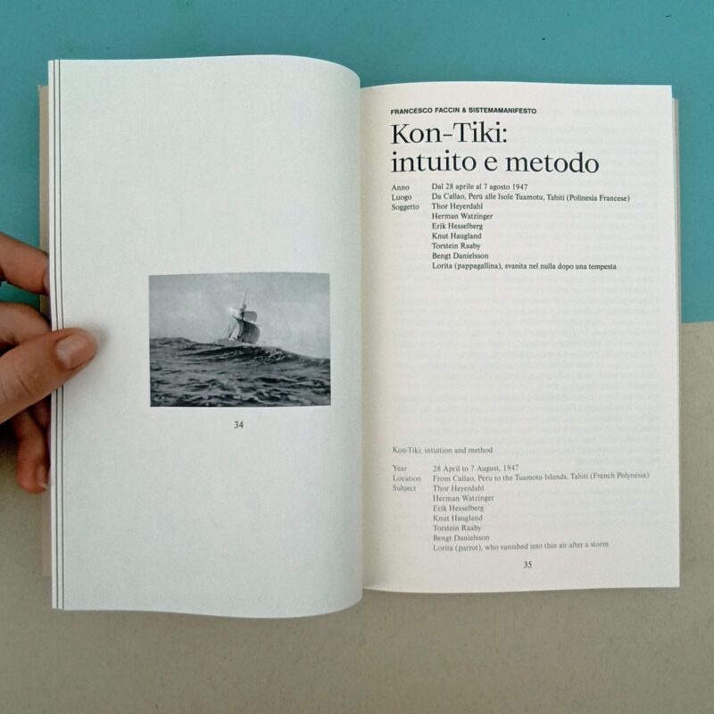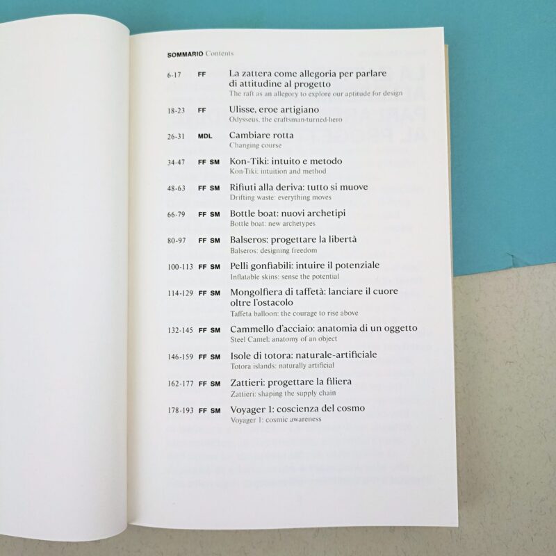 “Come naufraghi avanziamo alternando speranza per il futuro e terrore per la morte, produzione di bellezza e momenti oscuri. La zattera è un oggetto immaginifico, indispensabile, che nella storia dell’uomo ha rappresentato in varie forme la capacità di adattamento e l’attaccamento alla vita oltre ogni ragionevole ottimismo o il desiderio di andare altrove. Aggrapparsi alla vita, improvvisarsi artigiani e navigatori, sopravvivere per vivere meglio dopo. La zattera del naufrago, del migrante, dell’avventuriero, del malcapitato…La zattera è coraggio, speranza, tanto con poco, arte dell’improvvisazione, scarto che diventa salvezza. (..) Perdere la dimensione del rischio e dell’incertezza è il pericolo più grande che possiamo correre, perché solo coltivando questi aspetti restiamo in contatto con la necessità e il piacere della frugalità”.
