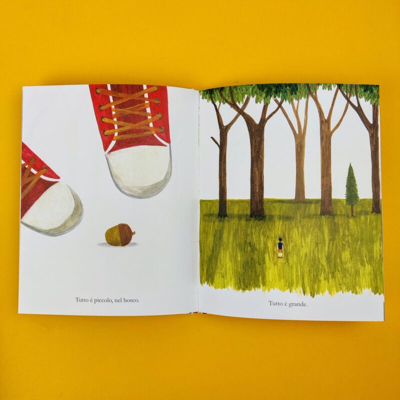 A livello materiale, le persone sono state traghettate “fuori” da un’inquadratura (una porta, una finestra, un orizzonte), una città, un mercato, o anche solo da una palla che un bambino vuole raggiungere e lo spinge a compiere i primi passi lontano dalla mamma. Da un bosco, un cielo, un’onda, dall’arte che dà risposte inaspettate a grandi domande irrisolte. “Fuori” ci portano tutti i corpi, le persone e le lingue che semplicemente non conosciamo. “Fuori” ci allunga il corpo di un libro, che ci stupisce: un formato, una forma, un packaging, una texture che non avevamo mai visto.